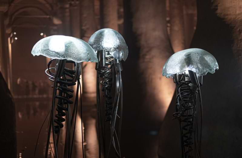 Instead of the concrete walkway, a new walkway closer to the water's surface now guides visitors through the cistern. Since the renovation, visitors are also greeted by several new sculptures that rise out of the water.